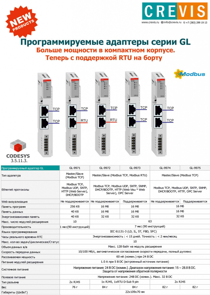 С 14 октября доступны к предзаказу новые программируемые адаптеры серии G. Все адаптеры GL представлены в компактном корпусе, с поддержкой Modbus RTU и Web визуализацией.