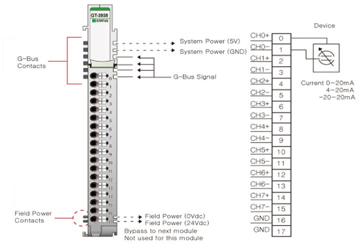 Не используется, полевое питание передаётся на следующий модуль расширения |