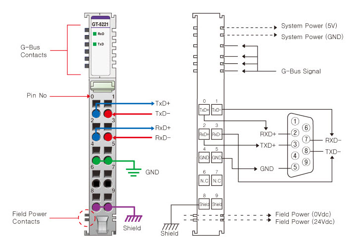 Не используется, полевое питание передаётся на следующий модуль расширения |