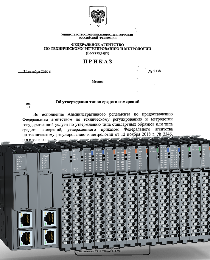 31 декабря 2020 года вышел приказ №2338 Росстандарта, в котором был утвержден тип средств измерений «Системы распределенного ввода вывода CREVIS».