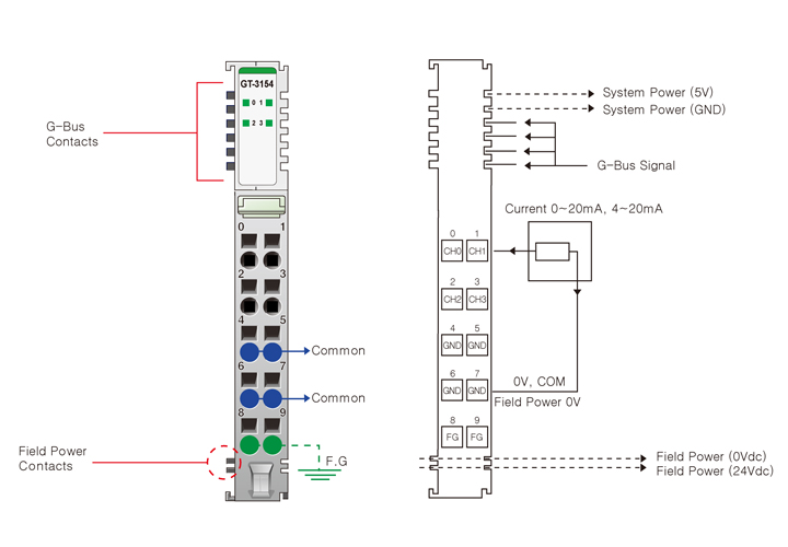 Диагностика отключения полевого питания: индикаторы статуса каналов мигают зелёным Значение входного сигнала < 0.5% (от верхней границы диапазона): индикатор соотв. канала не горит Значение входного сигнала > 0.5% (от верхней границы диапазона): индикатор соотв. канала горит зелёным Выход за пределы допустимого диапазона (< 3 мА для 4 ~ 20 мА): индикатор соотв. канала не горит |