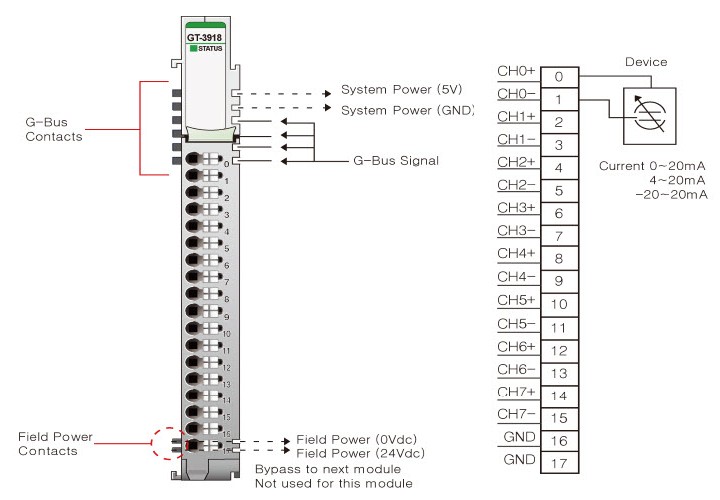 Не используется, полевое питание передаётся на следующий модуль расширения |