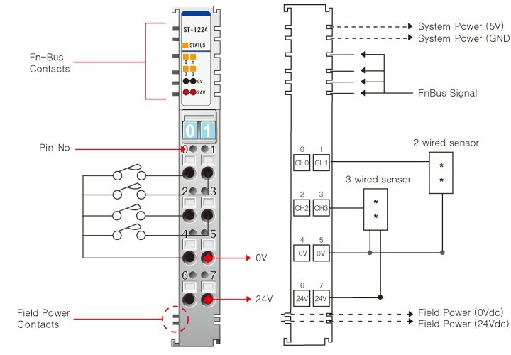 | Общие контакты | 4 контакта (0 В и 24 В) |