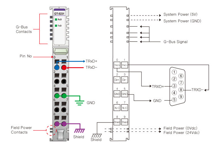 Не используется, полевое питание передаётся на следующий модуль расширения |