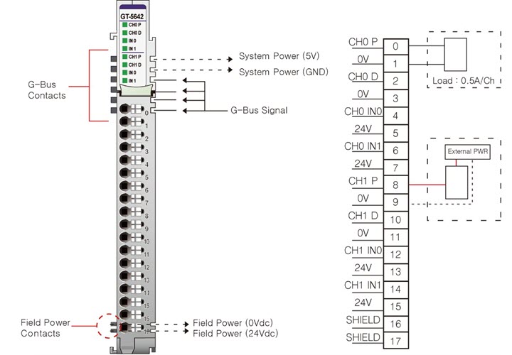 0.5 А на канал при -40 °C ~ 45 °C 0.3 А на канал при 45 °C ~ 60 °C 2 А на модуль |